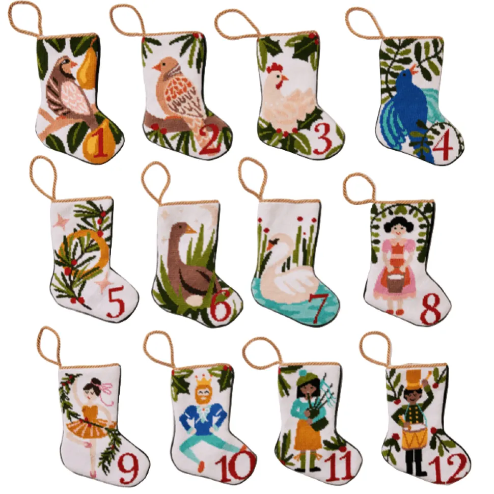 Each needlepoint Bauble Stocking is hand-stitched in Haiti for fair trade by a certified BCorp.