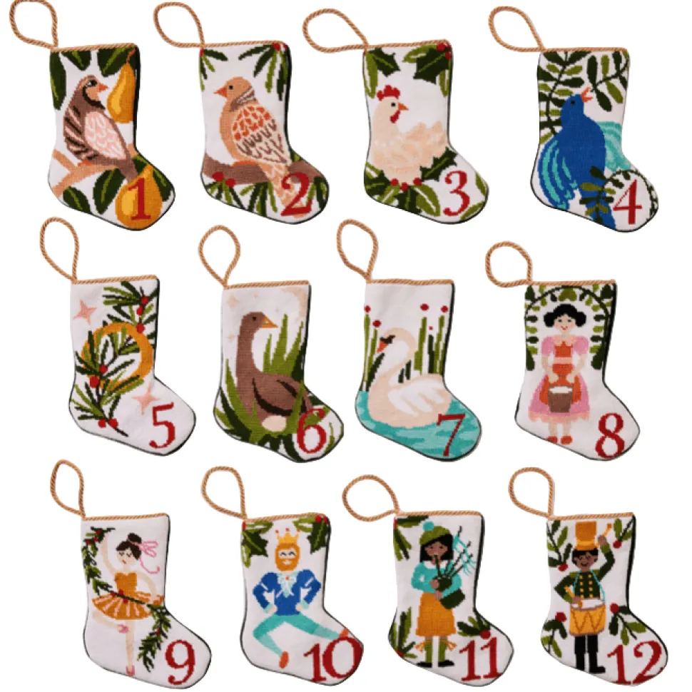 Each needlepoint Bauble Stocking is hand-stitched in Haiti for fair trade by a certified BCorp.