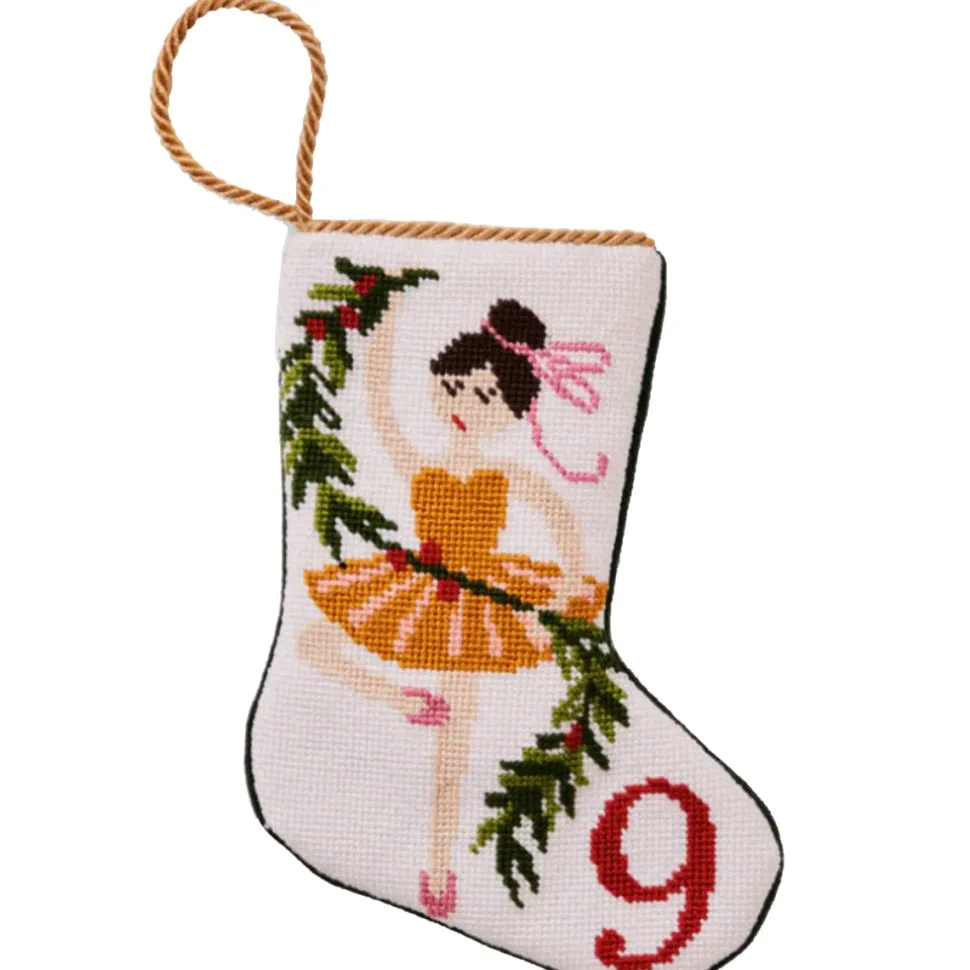 This 9 Ladies Dancing Stocking features a poised ballerina holding green garlands ready to dance around and deck the halls. Full of graceful charm and holiday sparkle, this heirloom captures the joy of movement and merriment and is the ninth piece in a full set of the 12 days of Christmas.