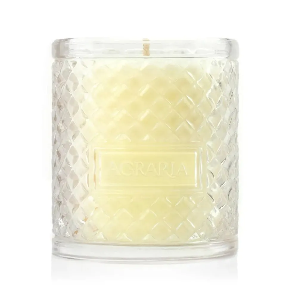Agraria’s scented candles are presented in a modern interpretation of the distinctive, woven palm leaf cases known by Agraria fans. The intricate pattern accentuates the movement of the flame to create a luminous and mesmerizing glow. Also, after the candle has burned completely, save the decorative glass to keep makeup brushes organized, hold paperclips on your desk, or make mini flower arrangements as place settings.