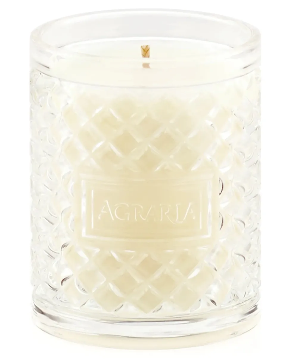 Agraria’s scented candles are presented in a modern interpretation of the distinctive, woven palm leaf cases known by Agraria fans. The intricate pattern accentuates the movement of the flame to create a luminous and mesmerizing glow. Also, after the candle has burned completely, save the decorative glass to keep makeup brushes organized, hold paperclips on your desk, or make mini flower arrangements as place settings.
