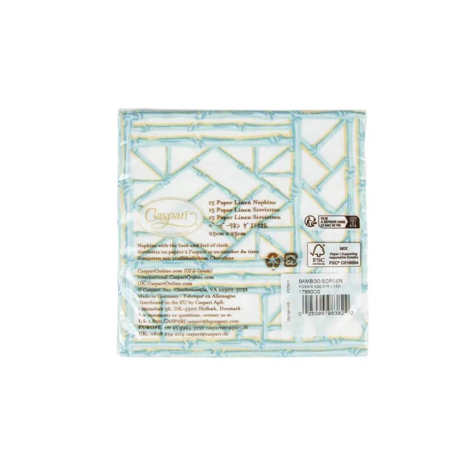 Caspari’s Paper Linen offers the look of linen, the feel of cloth, and the convenience of paper. Paper linen napkins are extra absorbent and durable, making them ideal for entertaining and everyday use. They are made of ultra-durable, linen-like airlaid paper and printed with nontoxic, water-based, food-safe inks. These napkins are made using environmentally-conscious raw materials, which ensures that they are both biodegradable and compostable. Our vibrant color options and beautiful designs elevate any occasion. Printed in Germany. 15 napkins per package.