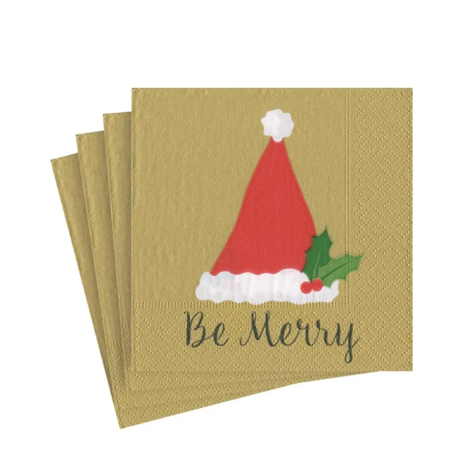 Be Merry Paper Cocktail Napkins in Gold – 20 Per Package