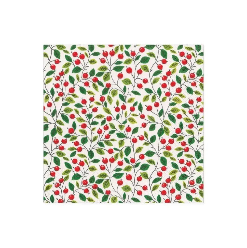 Berries and Leaves Paper Cocktail Napkins in White – 20 Per Package