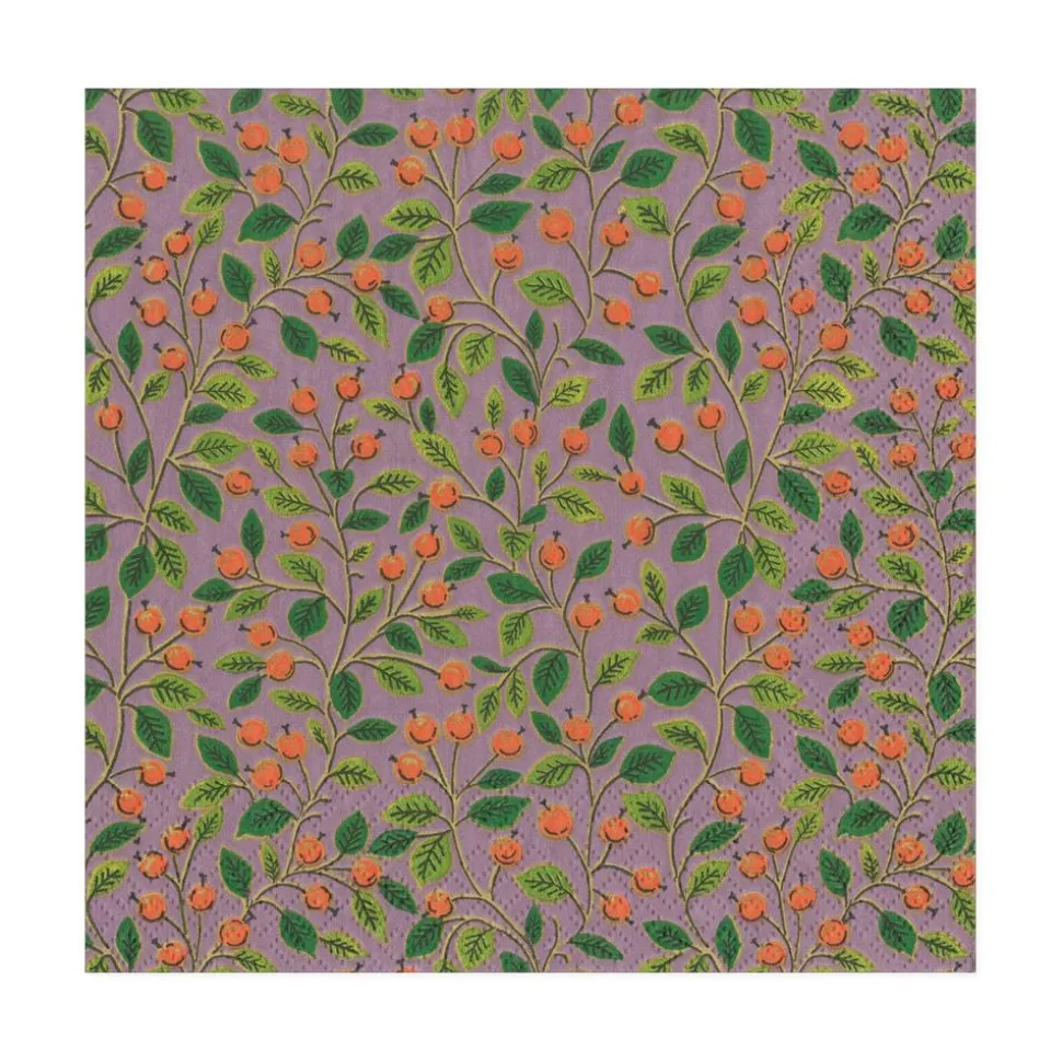 Berries and Leaves Paper Luncheon Napkins in Soft Plum - 20 Per Package