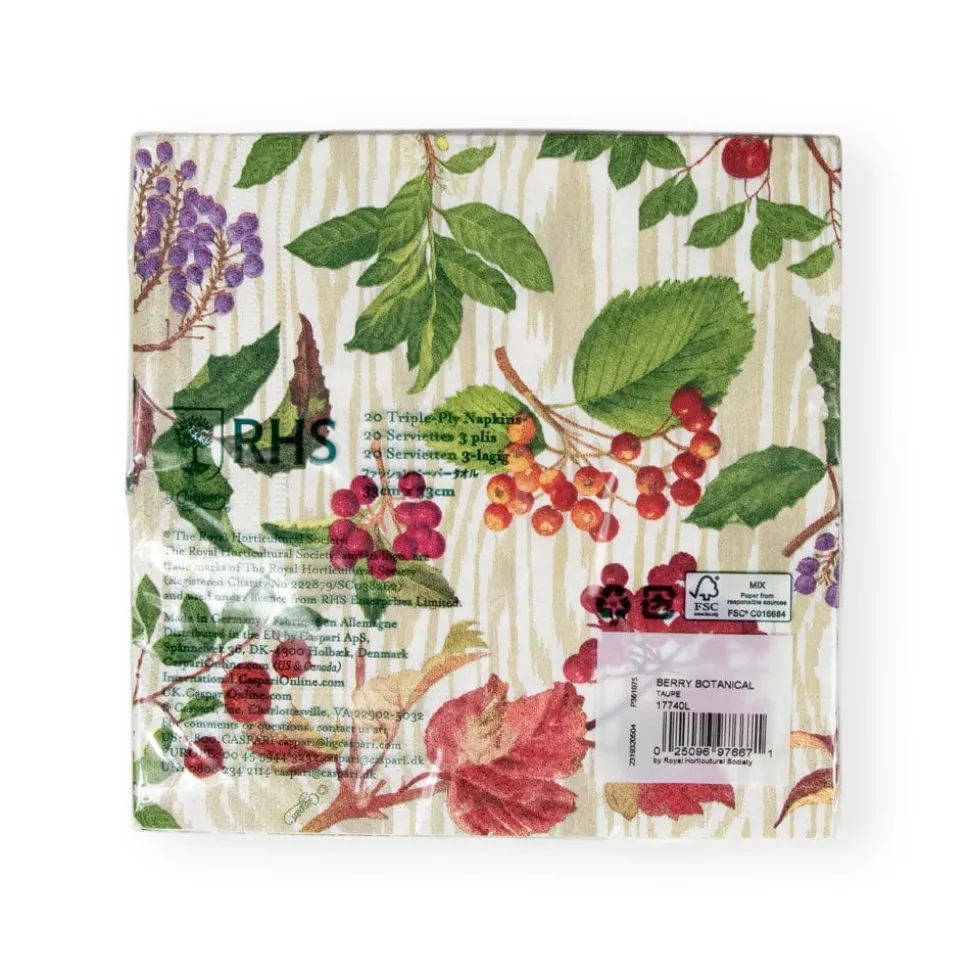 Caspari triple-ply napkins are both striking in design and durable in function. Thoughtfully designed to elevate any occasion, they feature artwork and designs from museums and artists around the world. Each is made of chlorine-free bleached triple-ply tissue and printed in Germany with non-toxic, water-based, food-safe ink. They are FSC-certified and made using environmentally-conscious raw materials, which ensures they are both biodegradable and compostable. Our napkins bring eco-friendly style and convenience to your tabletop. 20 napkins per package.