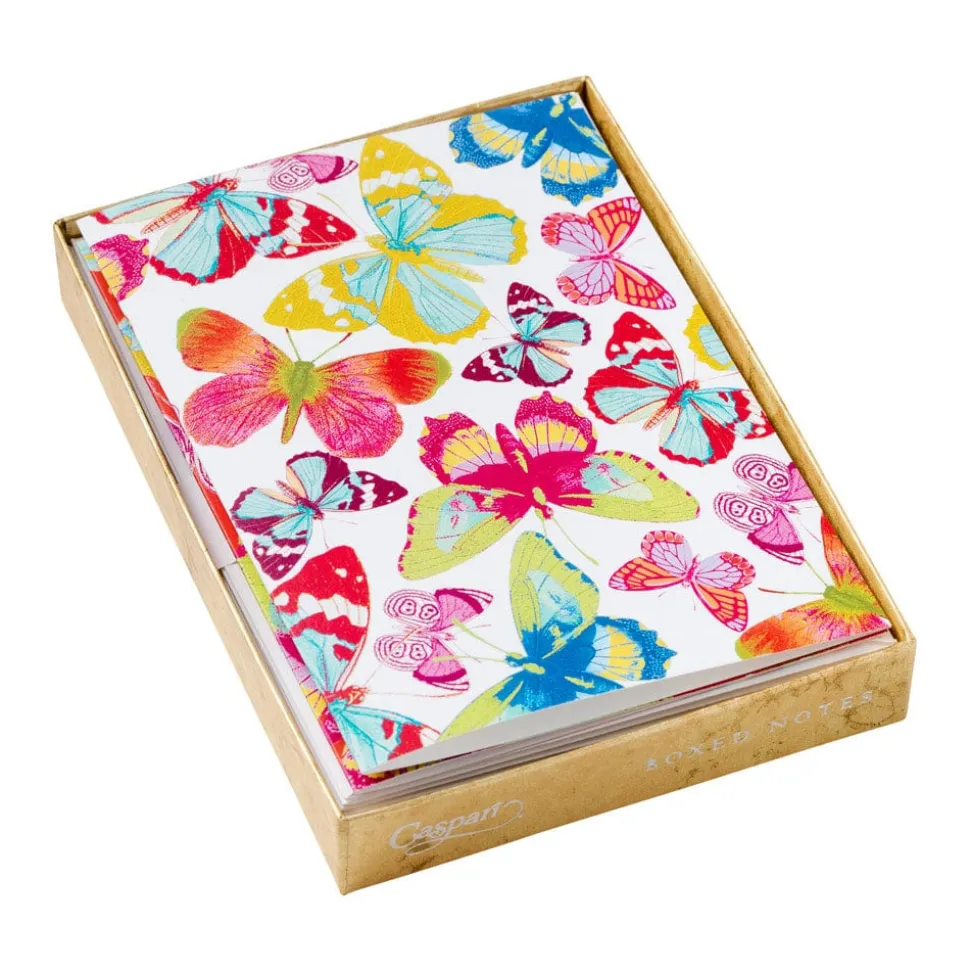 A stationery piece for any occasion, Caspari boxed note cards are a perfect staple for the home and office. Recipients of your notes will be greeted by stunning licensed artwork from artist and museums around the world. Our note cards are printed in on high-quality cardstock by a respected printing facility in Switzerland. It is one of the only printers in the world with the ability to gold bronze. Gold bronzing is a unique printing technique used by our Swiss printer that adds metallic details by dusting each card with a golden powder to create the shimmering accents that grace many of our cards. Inside, the notecards are blank, leaving you with room to write any sentiment for any occasion from a simple “thank you” to a short letter. The assortment of cards arrives in a gold foil box, making them perfect for gift giving. Contains 8 note cards and 8 coordinating envelopes.