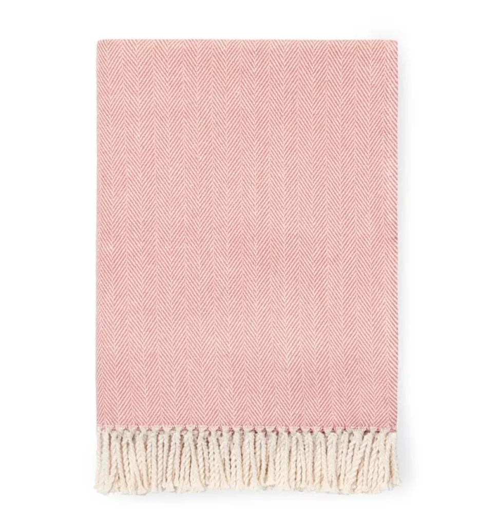 This classic throw blanket from Sferra blends cream and neutral tones in a beautiful herringbone weave. It features a plush, brushed cotton texture and is finished with a natural-toned twisted fringe.