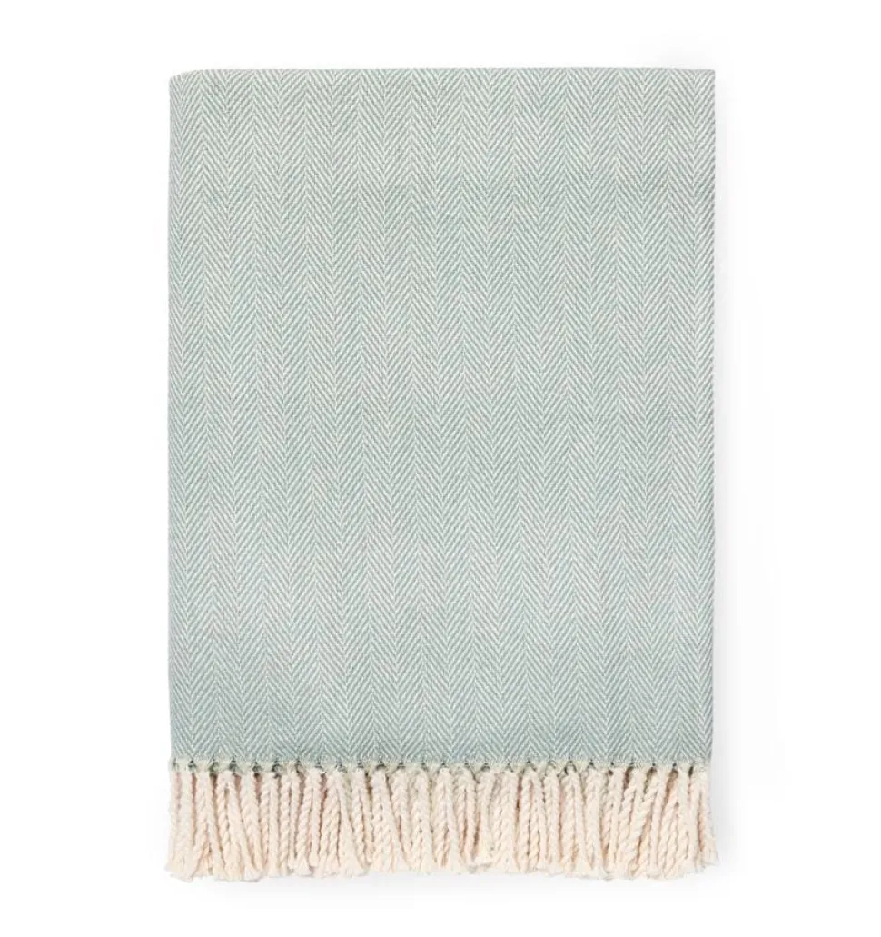 This classic throw blanket from Sferra blends cream and neutral tones in a beautiful herringbone weave. It features a plush, brushed cotton texture and is finished with a natural-toned twisted fringe.