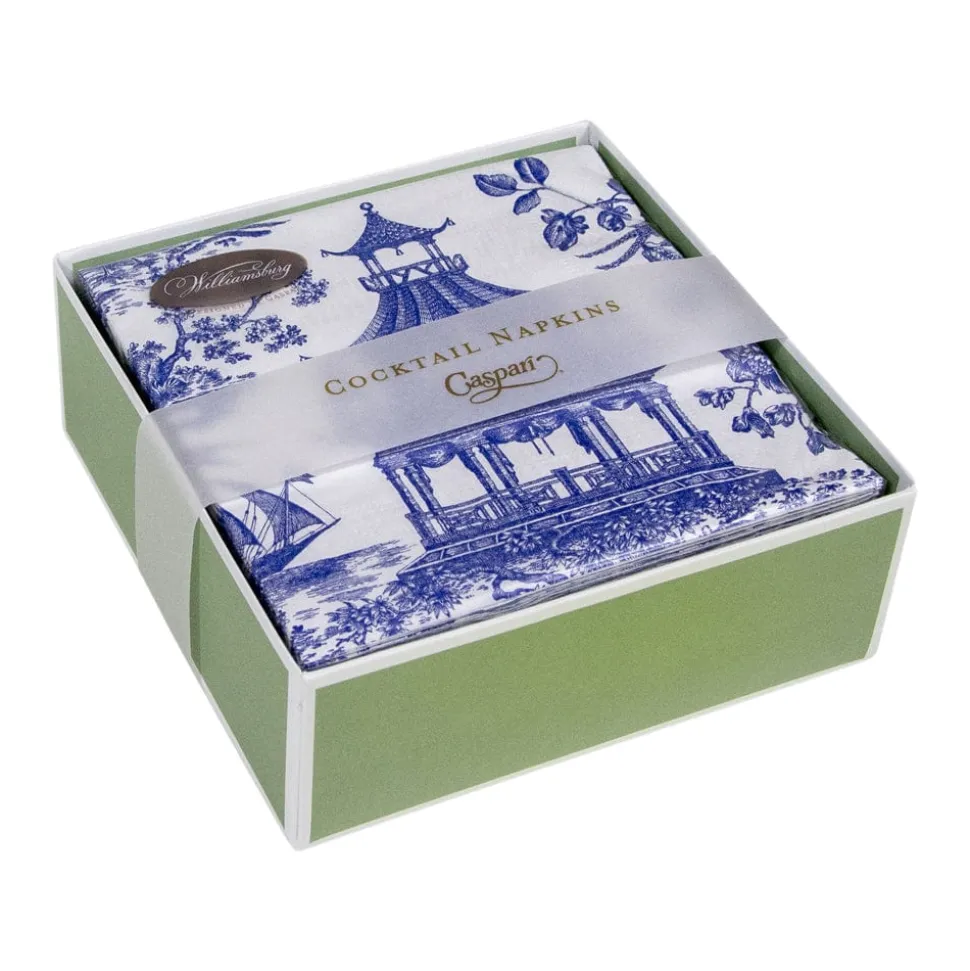 Chinoiserie Toile Pagoda Boxed Cocktail Napkins in Blue – 40 Per Box