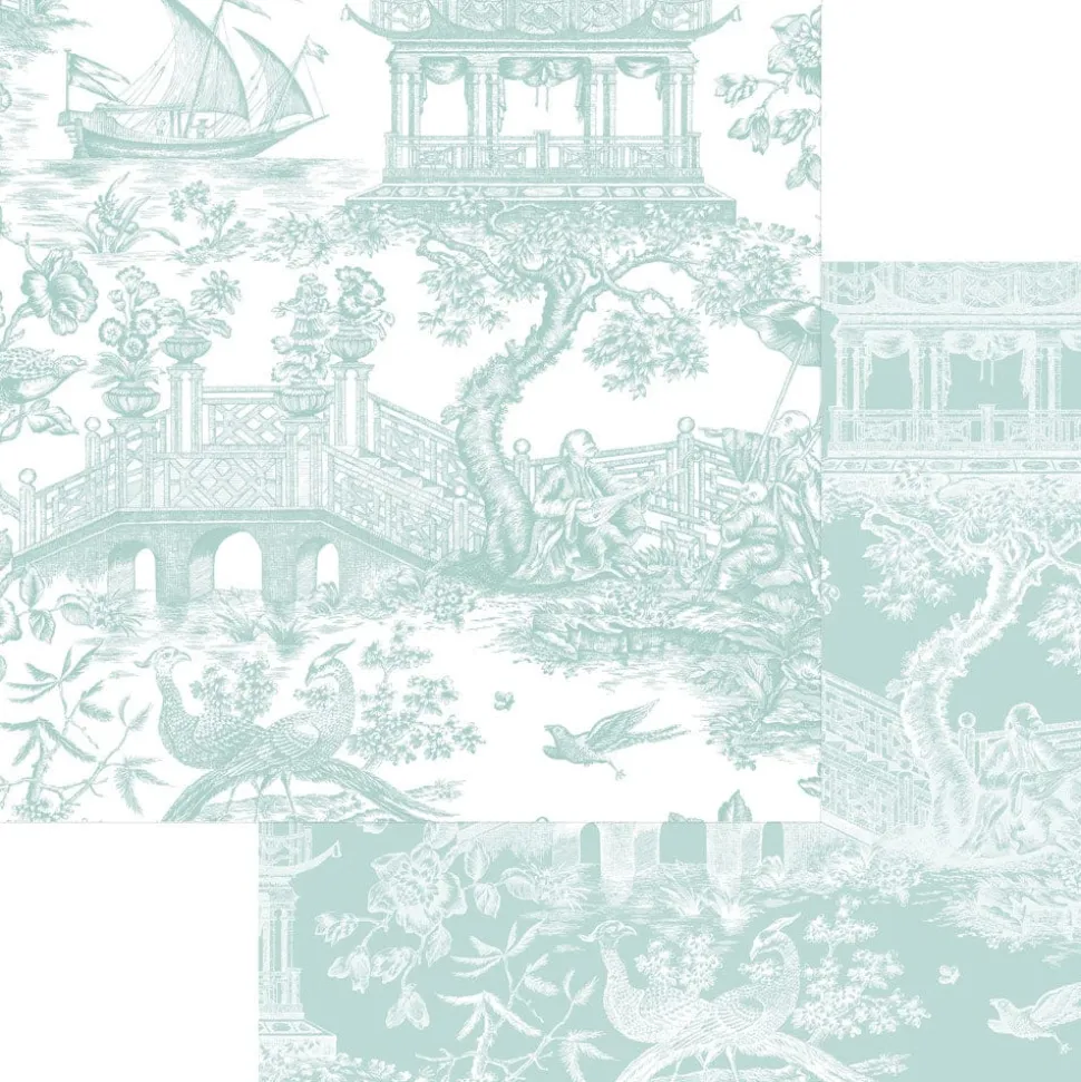 Chinoiserie Toile Reversible Gift Wrapping Paper in Robin's Egg - 30" x 8' Roll