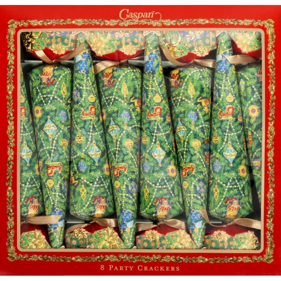 - All Christmas Crackers feature classic Caspari paper designs and additional luxury embellishments. This cracker features a unique Christmas tree, cone shape and can stand up on its base.