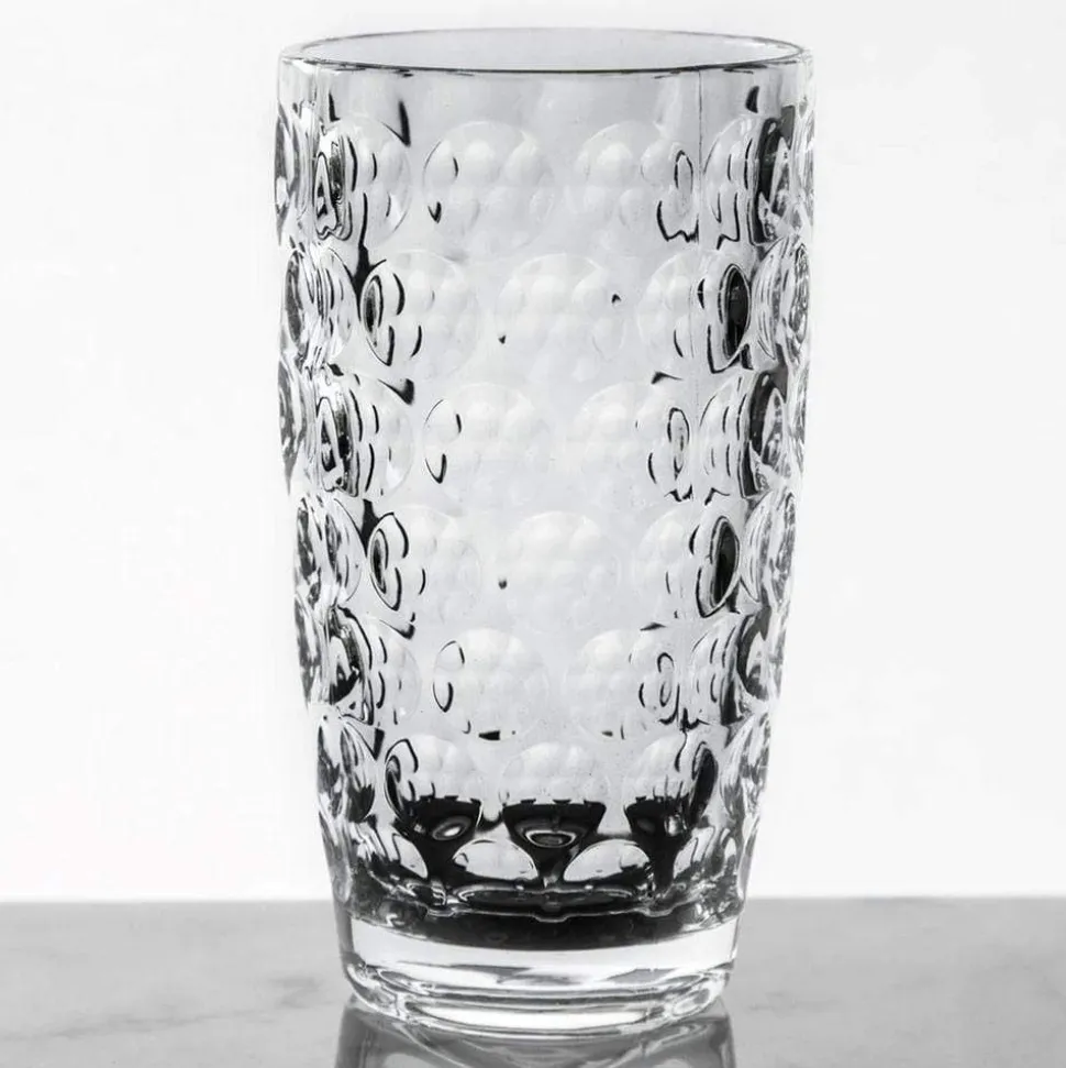 The acrylic Lente Highball glass is a fun pop art-inspired design making this plastic highball chic and practical. The Lente Collection features indented polka dots in various color options. Set your table with modern plastic glassware and barware.