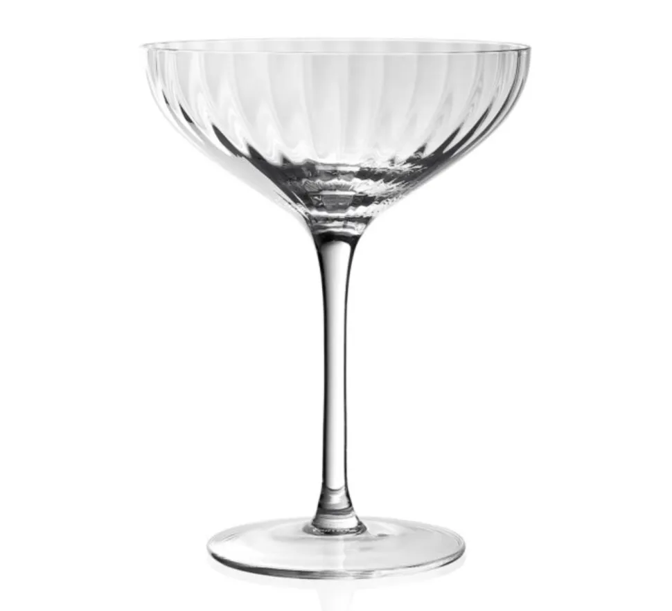 Drawing inspiration from the elegance of Jazz Age glassware, the Corinne Champagne Coupe combines vintage charm with contemporary sophistication. Its delicate vertical optic pattern elegantly refracts light, adding a subtle sparkle to your table setting. Designed to enhance your drinking experience, this coupe balances beautifully in your hand, making each sip feel special. Whether serving classic cocktails or sparkling champagne, Corinne elevates every occasion with its timeless style and refined craftsmanship. Perfect for entertaining or intimate moments, this glass effortlessly bridges the gap between traditional and modern aesthetics.