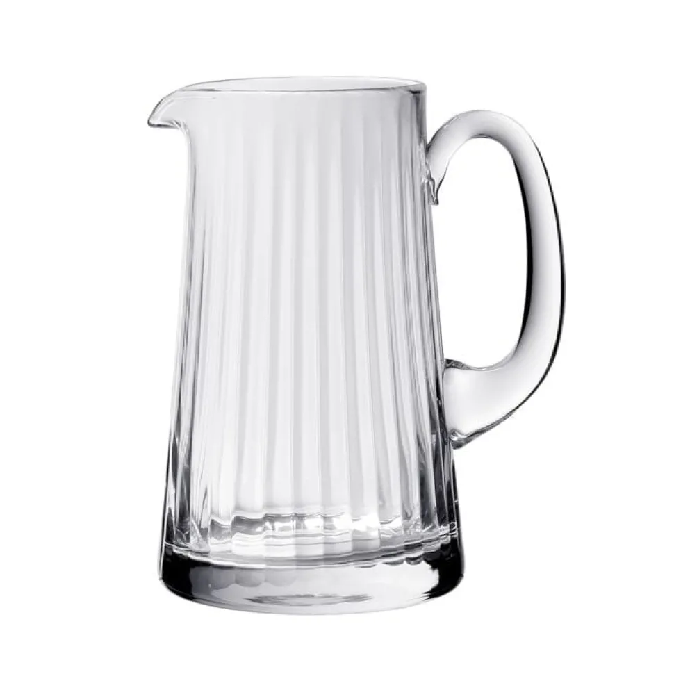 The Corinne Pitcher from William Yeoward is a stunning centerpiece that channels the elegance and charm of the 1920s and 1930s, an era celebrated for its vibrant cocktail culture and jazz sophistication. Featuring a captivating optical design, this pitcher embodies the glamour of a bygone age while offering timeless functionality. Each piece is meticulously handcrafted using traditional techniques passed down for over 150 years, ensuring exceptional quality and artistry. Perfect for serving your favorite beverages in style, the Corinne Pitcher transforms any gathering into a memorable occasion with its blend of historic craftsmanship and striking visual appeal.Â