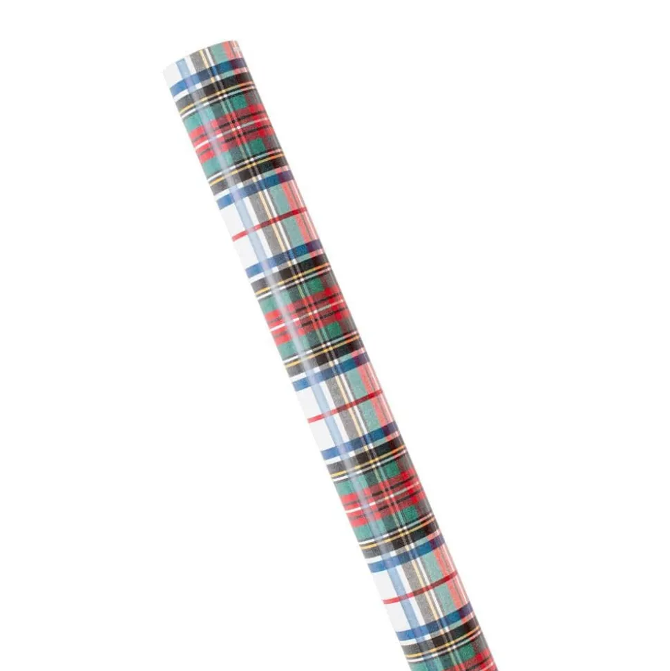 Dress Stewart Tartan Reversible Gift Wrapping Paper in White - 30" x 8' Roll