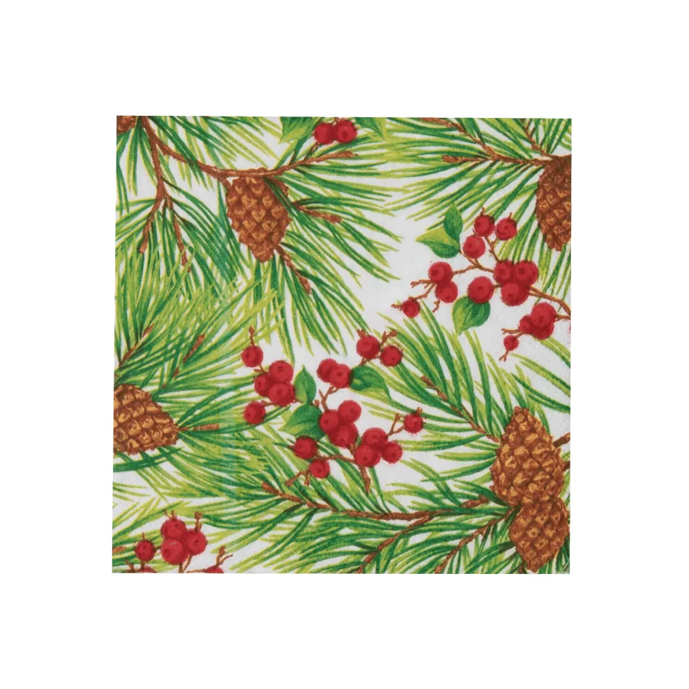 Evergreen and Berries White Cocktail Napkins - includes 20 Cocktail Napkins