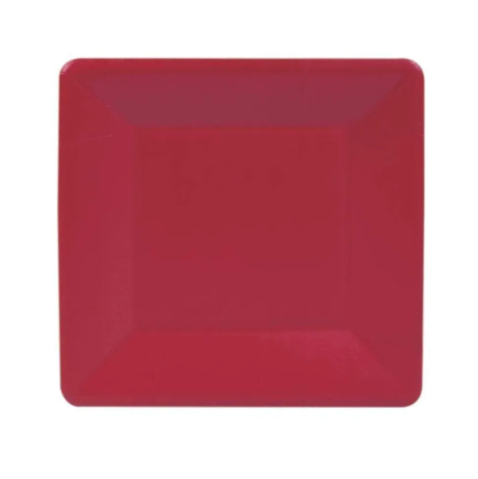 Grosgrain Square Paper Salad & Dessert Plates in Red – 8 Per Package