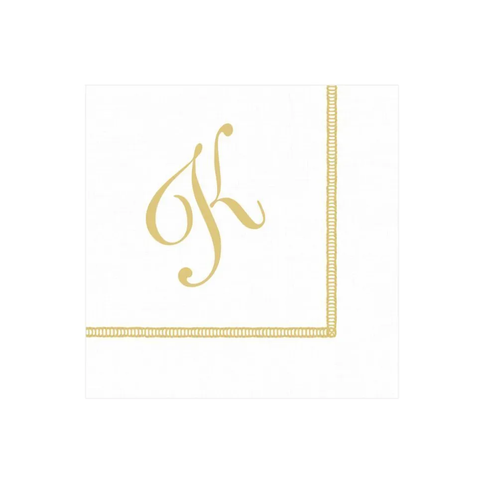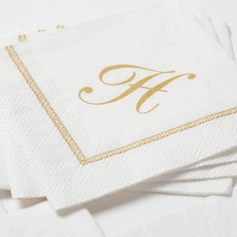 Caspari triple-ply napkins are both striking in design and durable in function. Thoughtfully designed to elevate any occasion, they feature artwork and designs from museums and artists around the world. Our initial design effortlessly adds a personal touch to your bar or table. Each is made of chlorine-free bleached triple-ply tissue and printed in Germany with nontoxic, water-based, food-safe ink. They are FSC-certified and made using environmentally-conscious raw materials, which ensures they are both biodegradable and compostable. Our napkins bring eco-friendly style and convenience to your tabletop. 20 initial napkins per package.