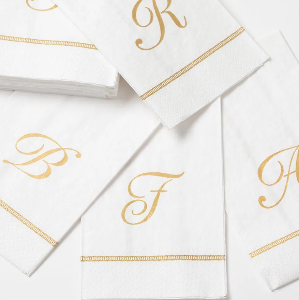 Caspari triple-ply napkins are both striking in design and durable in function. Thoughtfully designed to elevate any occasion, they feature artwork and designs from museums and artists around the world. Our initial design effortlessly adds a personal touch to your guest bath or table. Each is made of chlorine-free bleached triple-ply tissue and printed in Germany with nontoxic, water-based, food-safe ink. They are FSC-certified and made using environmentally-conscious raw materials, which ensures they are both biodegradable and compostable. Our napkins bring eco-friendly style and convenience to your tabletop. 15 initial napkins per package.