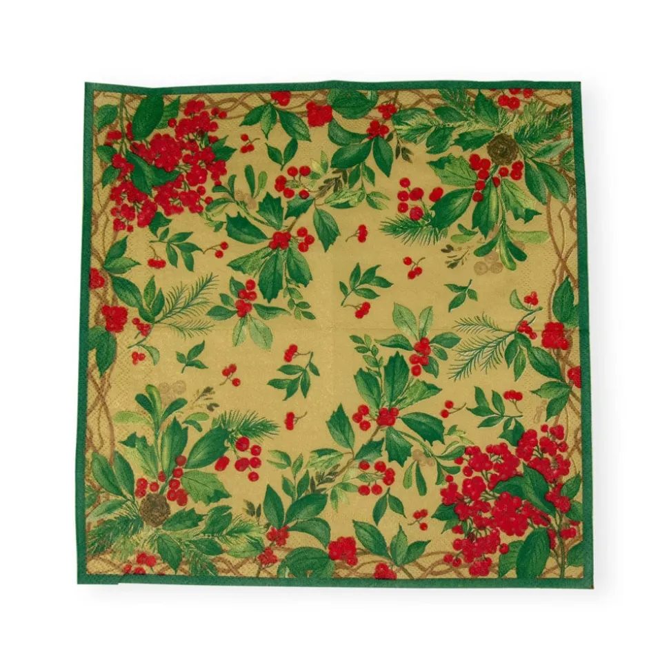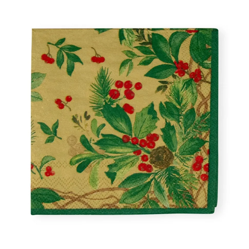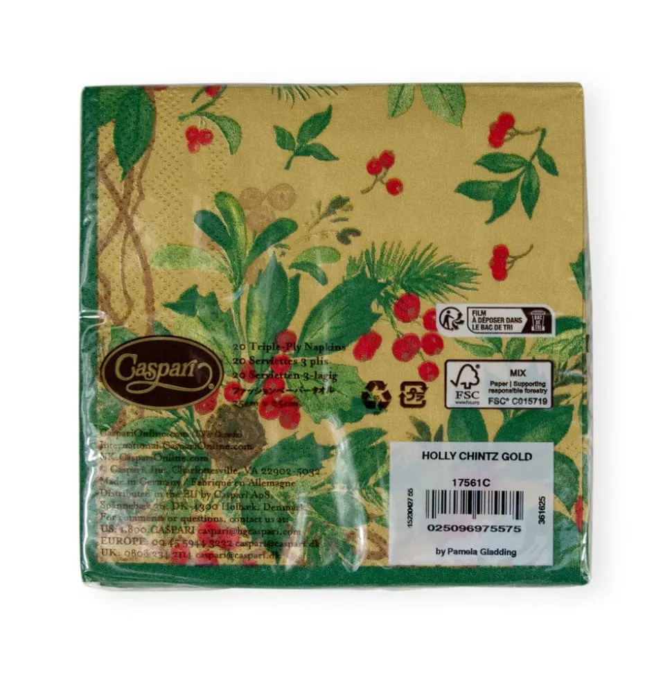 Holly Chintz Gold Cocktail Napkins – 20 Per Package