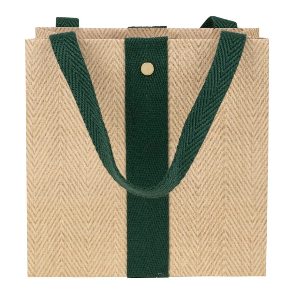 Jute And Twill Small Square Natural & Hunter Gift Bags - One Gift Bag Included
