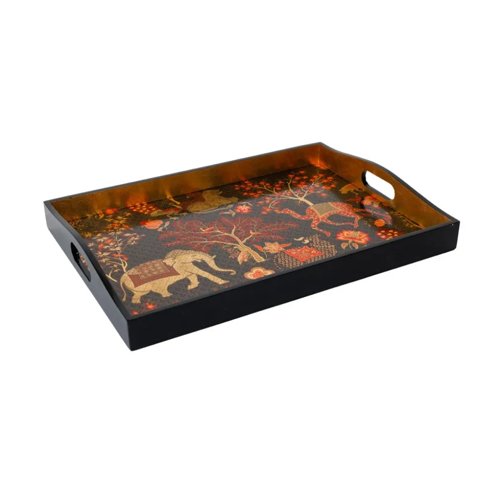 These high-quality, limited edition trays are timeless accents for your home. Perfect for putting the finishing touch on your table setting, serving guests, or creating a purely decorative display, they are highly versatile and beautiful. Featuring artwork from some of our best-selling artists and museum collections from around the world, they are a stunning and unique way to display art in your home. Their shining finish shows the true beauty of the original artworks and ensures a durable surface. Each tray is handmade in Vietnam and those with golden or silver framing or accents utilize genuine gold or silver leaf. Caspari Lacquer Trays are an elegant and thoughtful gift for nearly any occasion.