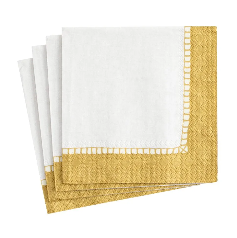 Linen Border Paper Cocktail Napkins in Gold – 20 Per Package