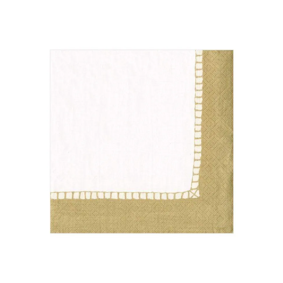 Linen Border Paper Cocktail Napkins in Gold - 20 Per Package