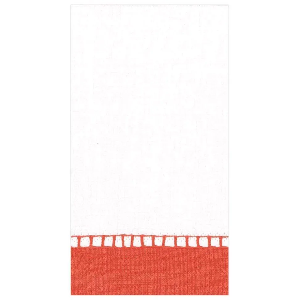 Linen Border Paper Guest Towel Napkins in Coral - 15 Per Package