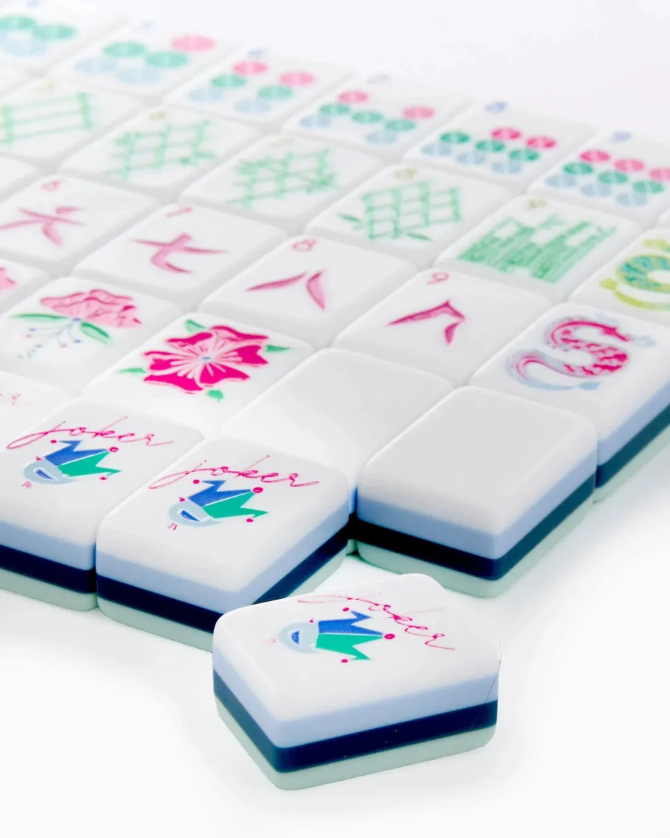 Introducing the Birdie Mahjong collection, inspired by the game’s most eye-catching element – the vibrant blue and green Bird Bam! This set features a captivating interplay of navy, sea foam, and light blue tiles, guaranteed to turn heads at your next Mahjong night. These hand-painted tiles are crafted from high-quality materials for lasting use, the Birdie line is perfect for players of all levels. Each set includes a complete set of 160 tiles, making it the ideal gift for Mahjong lovers or a luxurious upgrade for your game nights. So ditch the boring tiles and add a touch of elegance – Let’s play Mahjong with the Birdie collection!