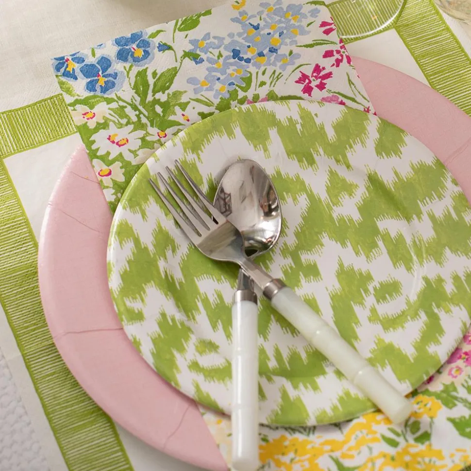 Our plates are printed in the USA and constructed from durable, high-quality paperboard that holds up even when plates are full. Plate prints and colors are always applied with safe, water-based dyes. During your next dining occasion, layer up Caspari paper plates and mix and match prints and sizes for a one of a kind tabletop style.