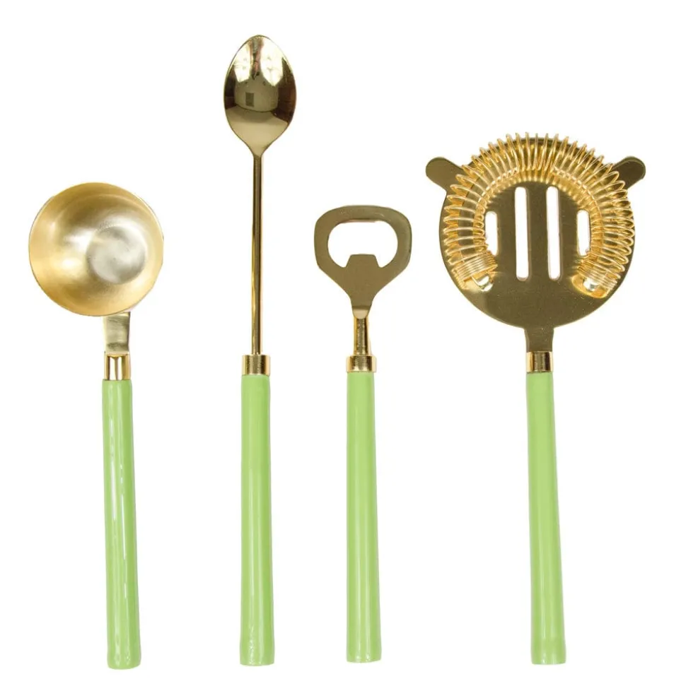 Add cheerful color to the bar with our Enameled Barware Set. Featuring a Shiny Brass finish and enameled handle, this set of 4 barware tools makes a fun gift for yourself or others.