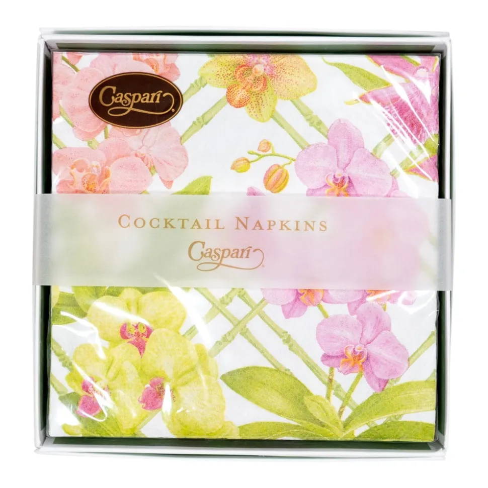 Caspari triple-ply napkins are both striking in design and durable in function. Thoughtfully designed to elevate any occasion, they feature artwork and designs from museums and artist around the world. Each is made of triple-ply tissue and printed in Germany with non-toxic, water-soluble dyes and food-safe ink. They are FSC-certified and made using environmentally-conscious raw materials, which ensures they are both biodegradable and compostable. Our napkins bring eco-friendly style and convenience to your tabletop. 40 napkins included in a gilded gift box with acetate lid. Caspari boxed cocktail napkins make an excellent and useful gift item.