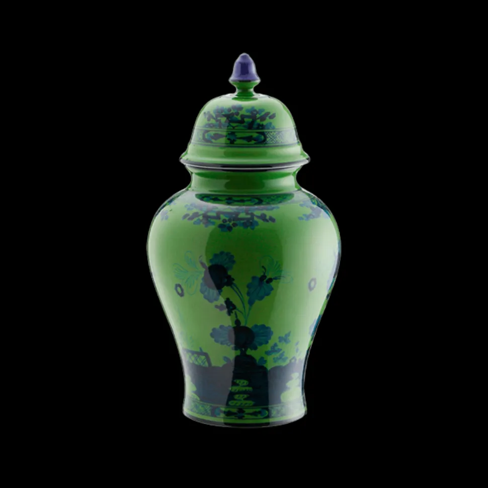 Ginori Potiche Vases with removable covers are handcrafted of porcelain and airbrushed to achieve the beautiful depth of colors. Assorted motifs complement the exquisite range of dinnerware. Handmade in Italy.