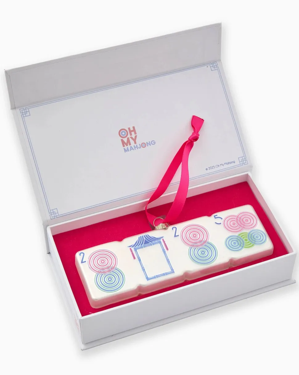 Inspired by the 2025 hand on the National Mah Jongg League Card and our elegant Luminaire Tiles, this ornament is a stunning tribute to the beauty of mahjong. It captures the spirit of the game in a way that shines. Whether displayed on your tree, gifted to a fellow mahjong enthusiast, or kept as a treasured keepsake, the Luminaire Ornament is a timeless addition to any collection.