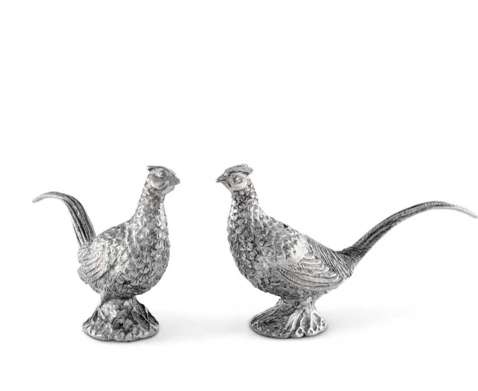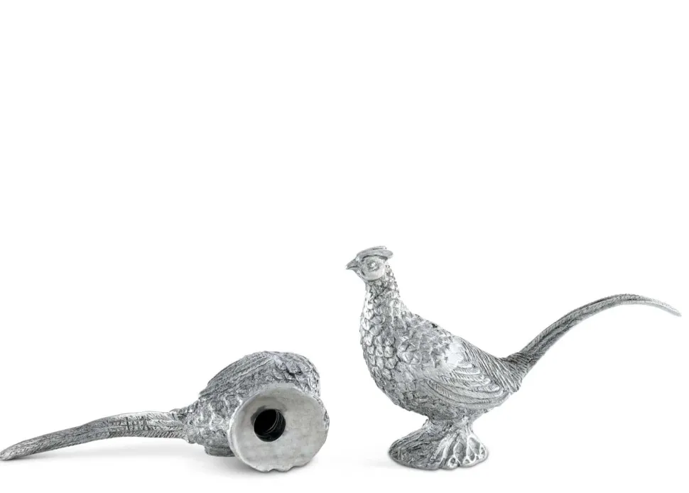 Enhance your dining table with the elegant Pewter Pheasants Salt & Pepper Set, expertly crafted by renowned wildlife artist Helen Richard. This finely detailed set features a high-quality pewter finish, capturing every intricate feather and beak with precision. Its compact dimensions of 1″W x 4″L x 2″H make it a perfect decorative accent that also serves a practical purpose. Ideal for adding a touch of sophistication to your meals or as a thoughtful gift for bird enthusiasts who appreciate refined style.