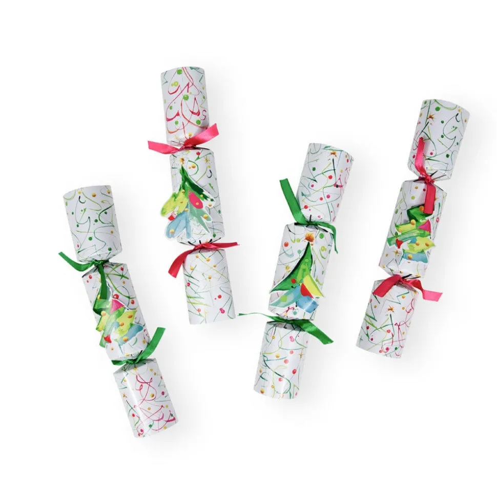 Our crackers are each filled with festive surprises and feature classic Caspari paper designs, bows, appliques, and more. Individuals or partners grab the ends and pull to open the cracker with a “bang” and reveal the prizes inside.