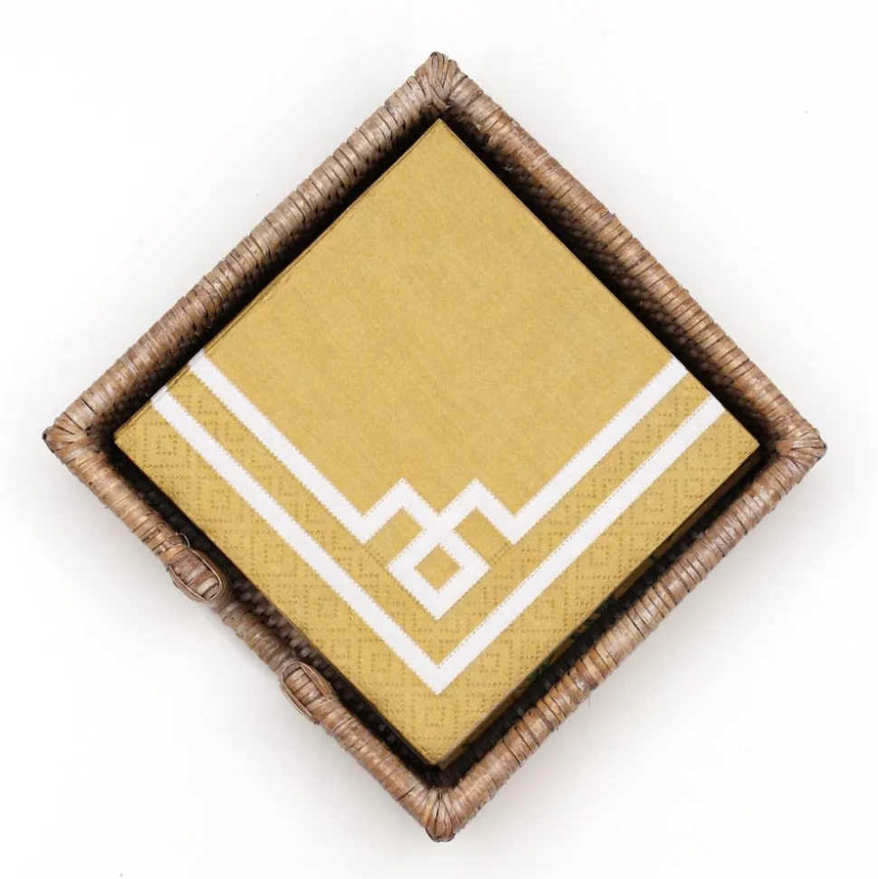 Perfectly sized to hold Caspari paper and paper linen napkins, our napkin holders are an easy addition to your tabletop décor. Use them to keep napkins neatly presented and always within reach in your dining room, on your coffee table, kitchen counter, or in a guest bath. Our rattan style napkin holders coordinate well with all Caspari Napkin designs, colors, and seasonal styles. The collection is crafted from naturally beautiful woven rattan material. Each can hold up to 2 packs. Can be used for indoor or outdoor entertaining but are not suitable for outdoor storage or exposure to inclement weather conditions.