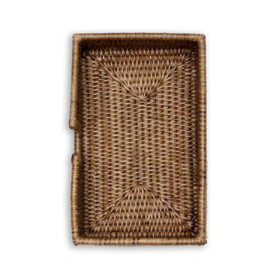 Perfectly sized to hold Caspari paper and paper linen napkins, our napkin holders are an easy addition to your tabletop décor. They are a perfect way to keep napkins neatly presented in your dining room, on your coffee table, kitchen counter, or in a guest bath. The designs in our rattan collection feature a durable double-weave and handcrafted charm. Constructed from naturally fast-growing rattan, these reusable pieces add an element of eco-friendly style to your tabletop. Each napkin holder can hold up to 2 packs of Caspari napkins and coordinate well with most of our existing designs and colors.