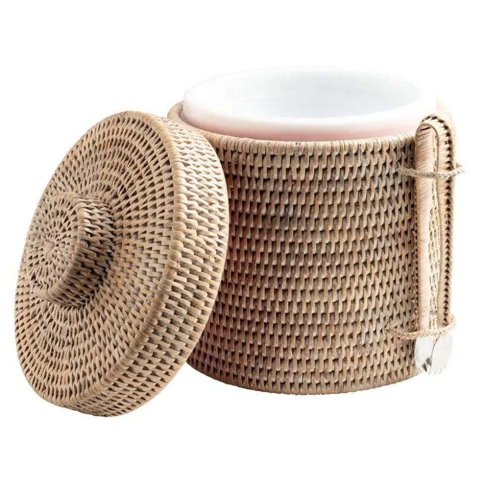 An elegant entertaining accessory, our rattan ice bucket brings natural, textural style to your bar or tabletop. It’s equipped with rattan wrapped metal ice tongs and a set of exterior tong-holding loops. The designs in our rattan collection feature a durable double-weave and handcrafted charm. Constructed from naturally fast-growing rattan, these reusable pieces add an element of eco-friendly style to your tabletop.