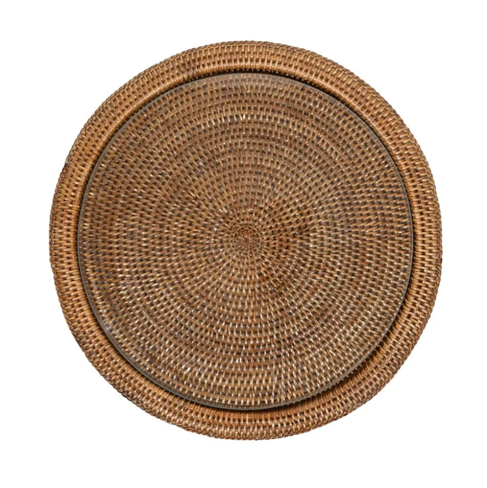 Handwoven from fast growing, sustainable rattan, our rattan accessories bring a timeless texture and warmth to the home. The Round Rattan Serving Tray features a removable, washable glass insert, and is the perfect serving piece for cheese and charcuterie.