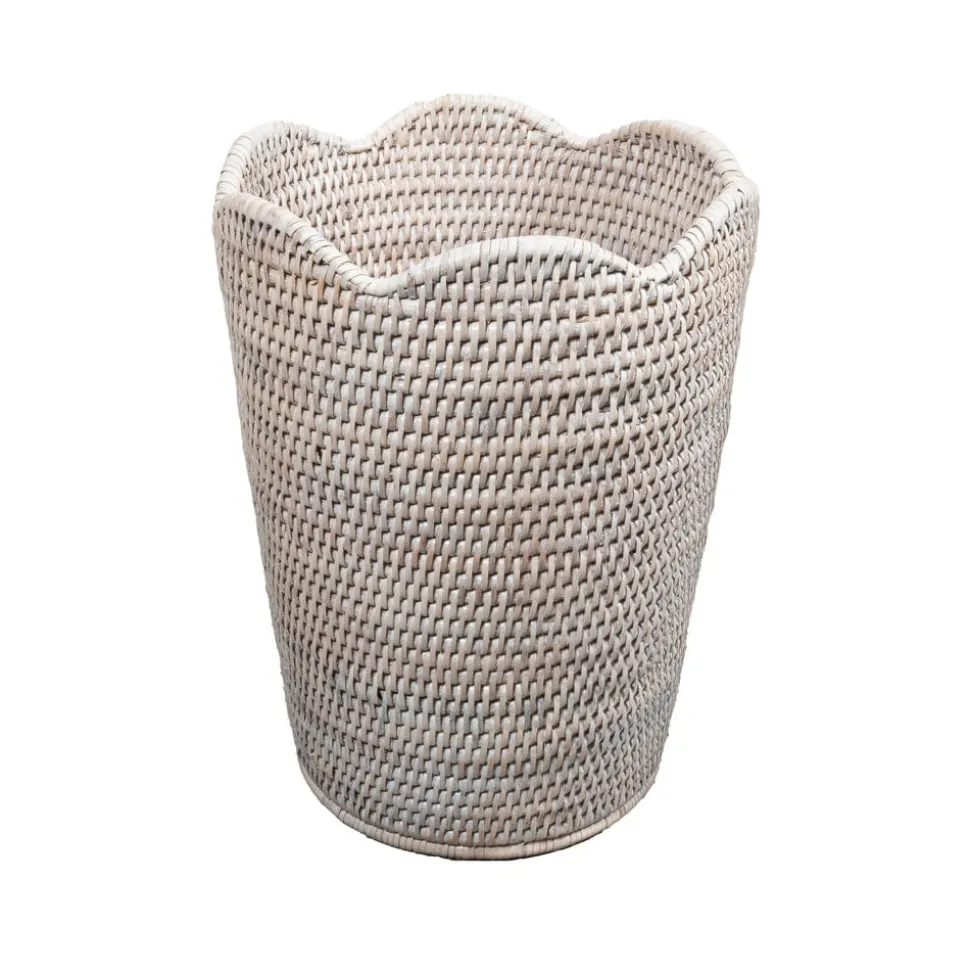 Handwoven from fast growing, sustainable rattan, our rattan accessories bring a timeless texture and warmth to the home. The Scalloped Rattan Waste Basket features a charming, scalloped rim and a slightly tapered shape. It coordinates perfectly with our Rattan Tissue Box Cover in the powder room or office.