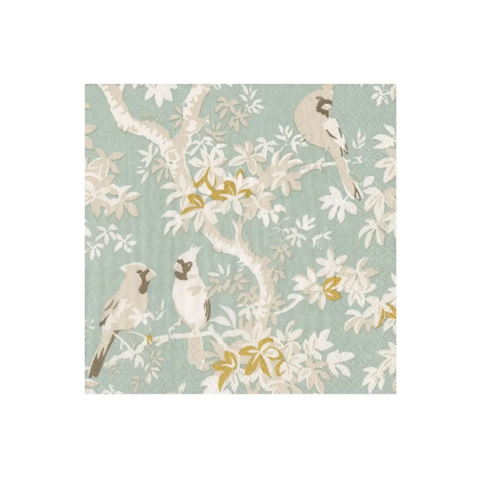 Scenic Songbirds Celadon Boxed Cocktail Napkins - 40 Per Box