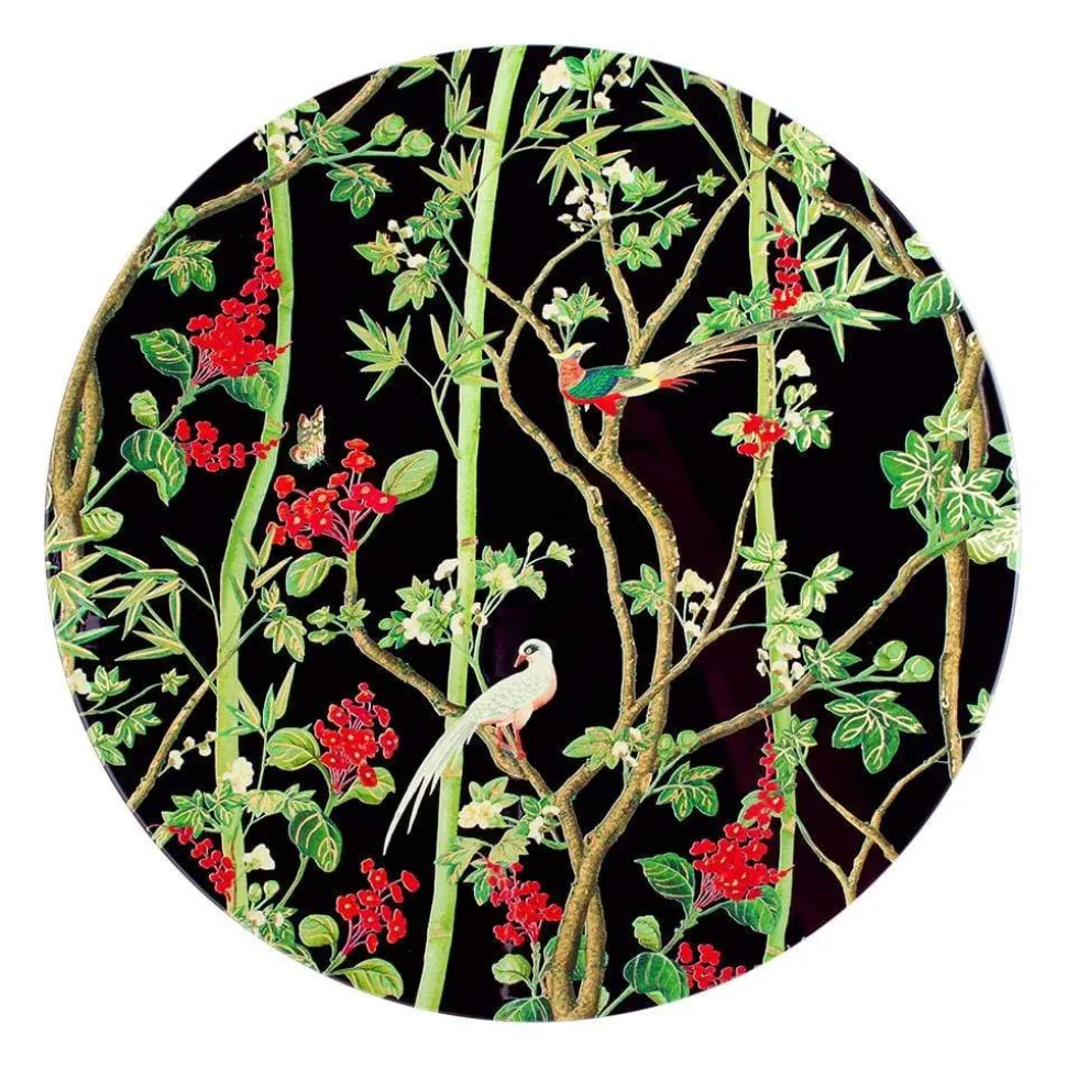 Scots Wallpaper Round Lacquer Placemat in Black – 1 Each