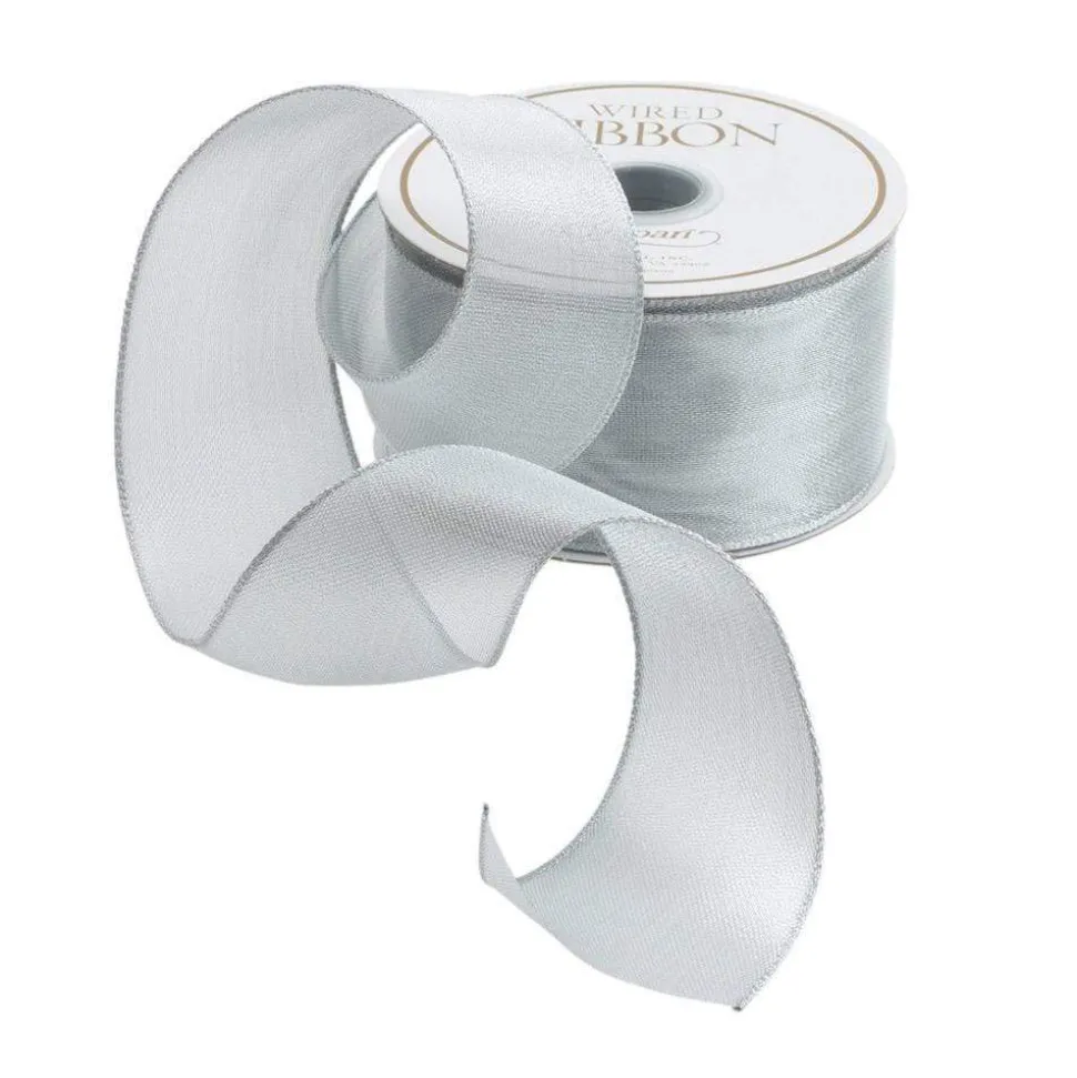 Sheer Silver Wired Ribbon – 9 Yard Spool