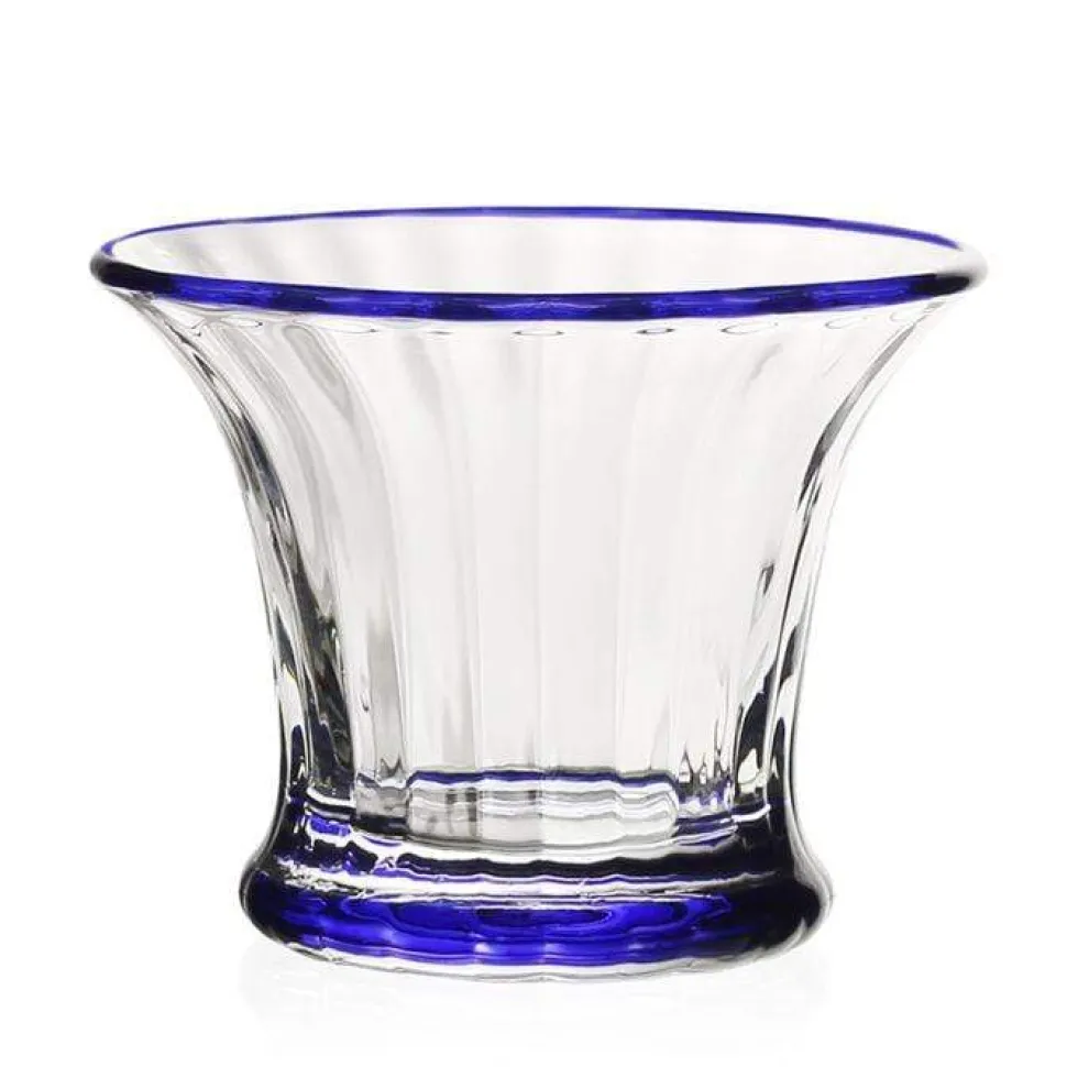 The Siena MIni Vase / Sorbet in Blue from William Yeoward is part of the expanded handcrafted summer Studio collection. These Siena pieces provide unique vases with a colorful rim that can be mixed and matched on any tabletop. Each piece is handblown by William Yeoward artisans so no two pieces will be exactly alike. Mini-Vases make beautiful flower arrangements, but are equally at home on a tabletop used for sorbet or ice cream. William Yeoward’s balance of traditional quality and modern style has earned the London company global renown as well as a Royal Warrant from the Prince of Wales.