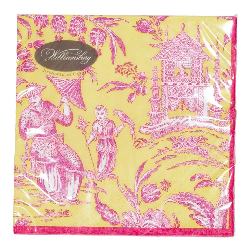 Silk Road Toile Chartreuse Cocktail Napkins - 20 Per Package