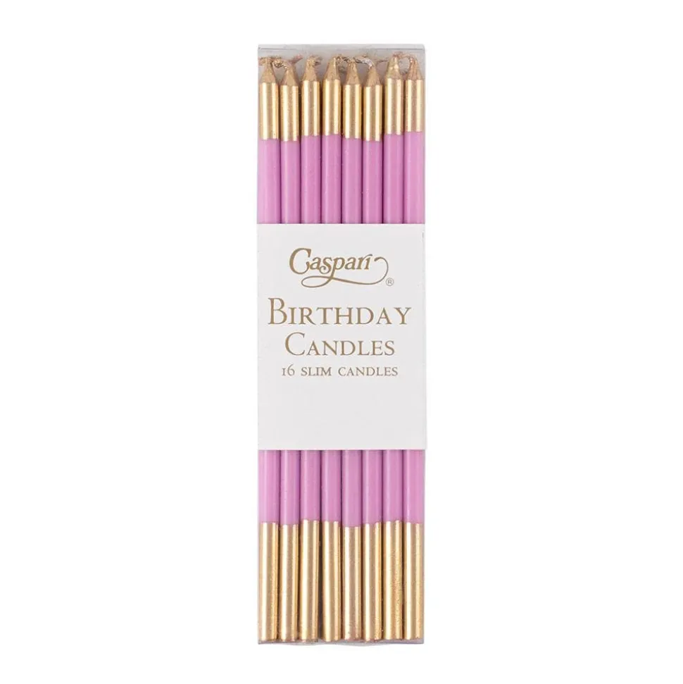 Available in a variety of festive colors, our charming slim birthday candle packs range from cool to hot, primary to pastel, and even tropical colors. Each container includes 16 slim-style birthday candles that give cakes and cupcakes elegant and whimsical flair. Our candles feature through-color so you can celebrate colorfully for birthdays and more special occasions.