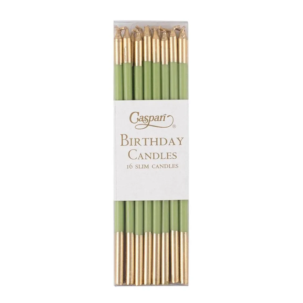 Slim Birthday Candles in Moss Green & Gold – 16 Candles Per Package